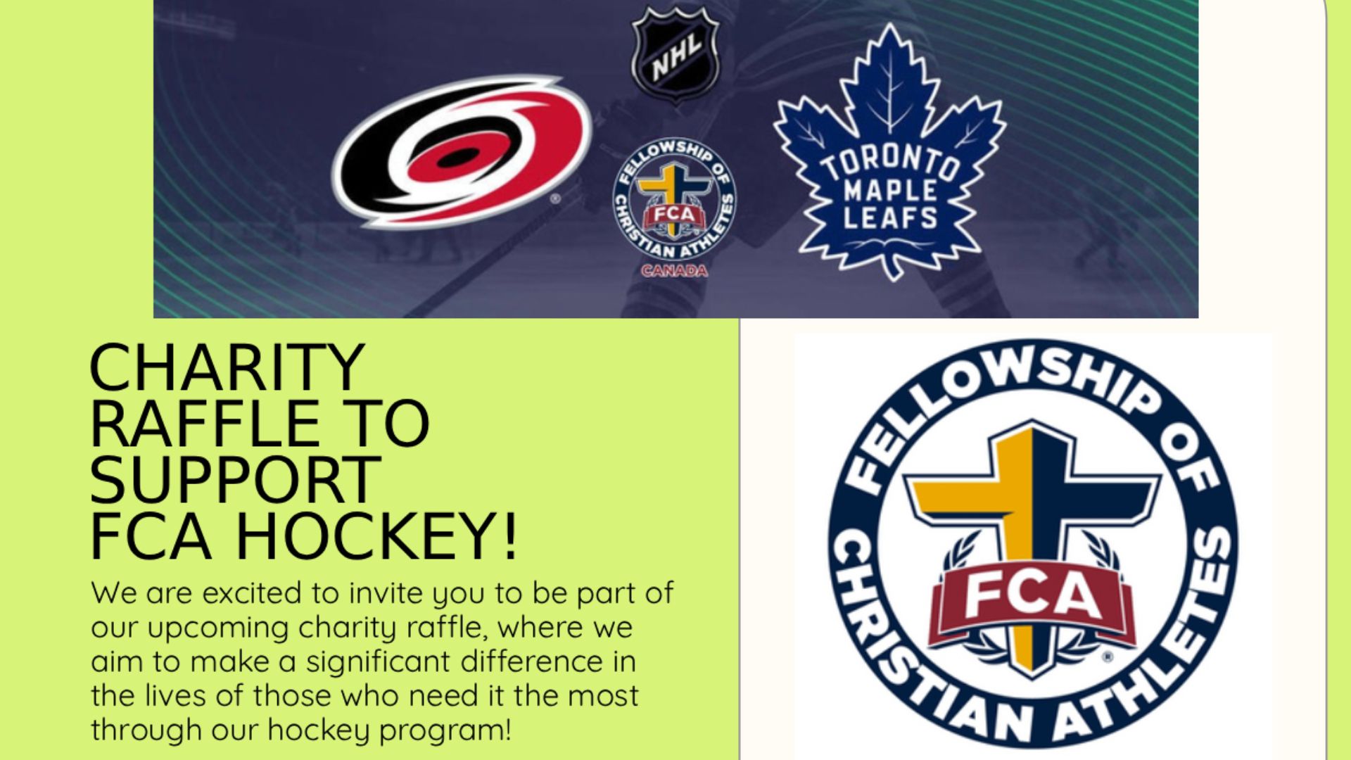 Fellowship of Christian Athletes (FCA) Canada desires to love athletes and coaches the way God loves us.
