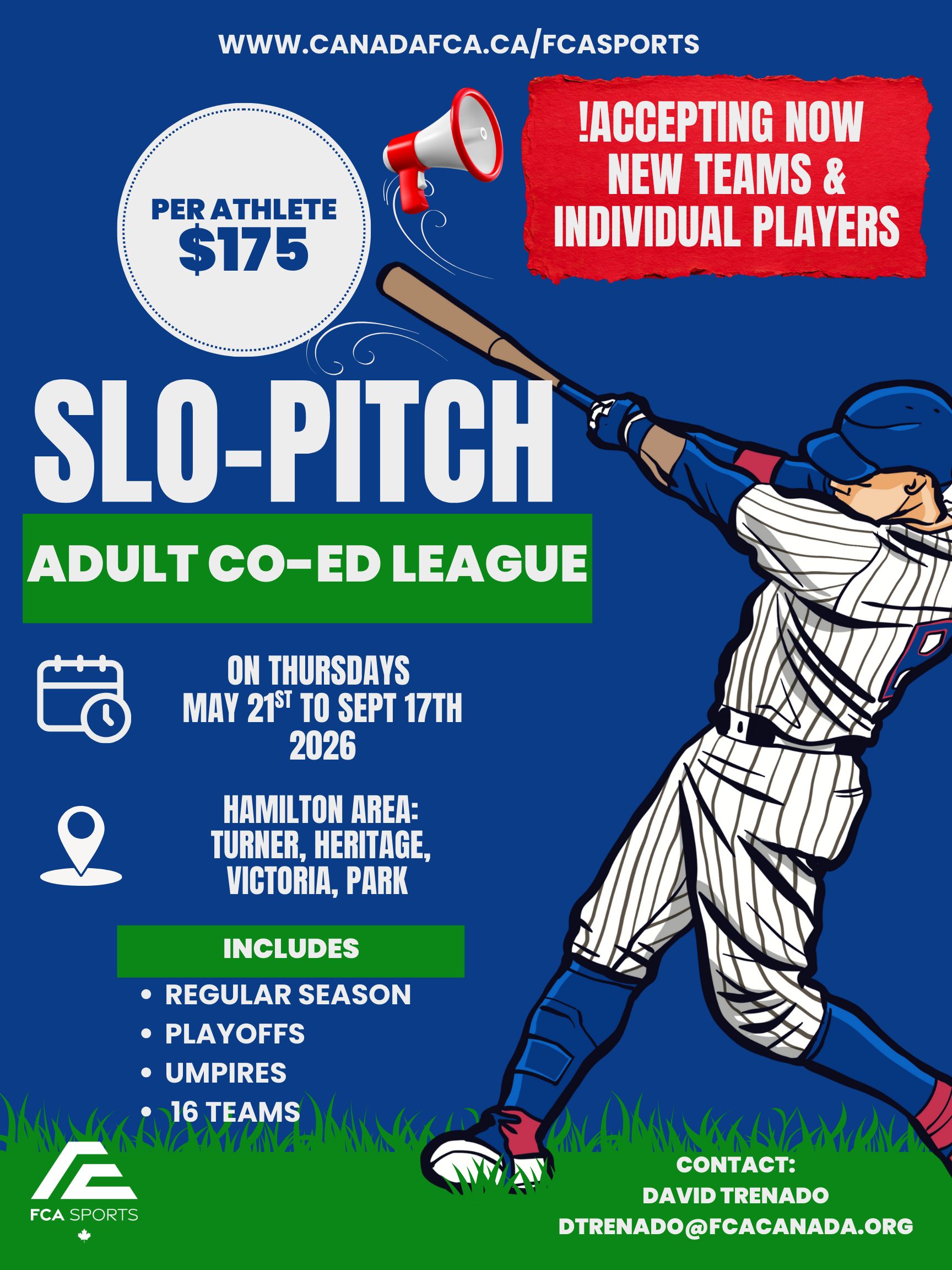 Join our adult slo-pitch league and expect not only playing the sport but also developing friendships while addressing and exploring meaningful life topics. Regular season and playoffs.